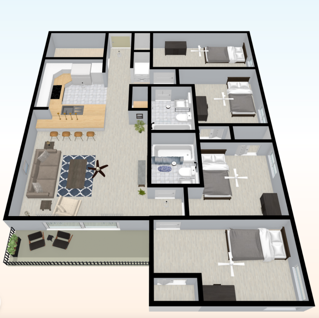 We have one room left in this 4 bed – 2 bath condo! This condo has an open living area that includes a kitchen, dining, and living room, and has a washer/dryer and balcony/patio.
