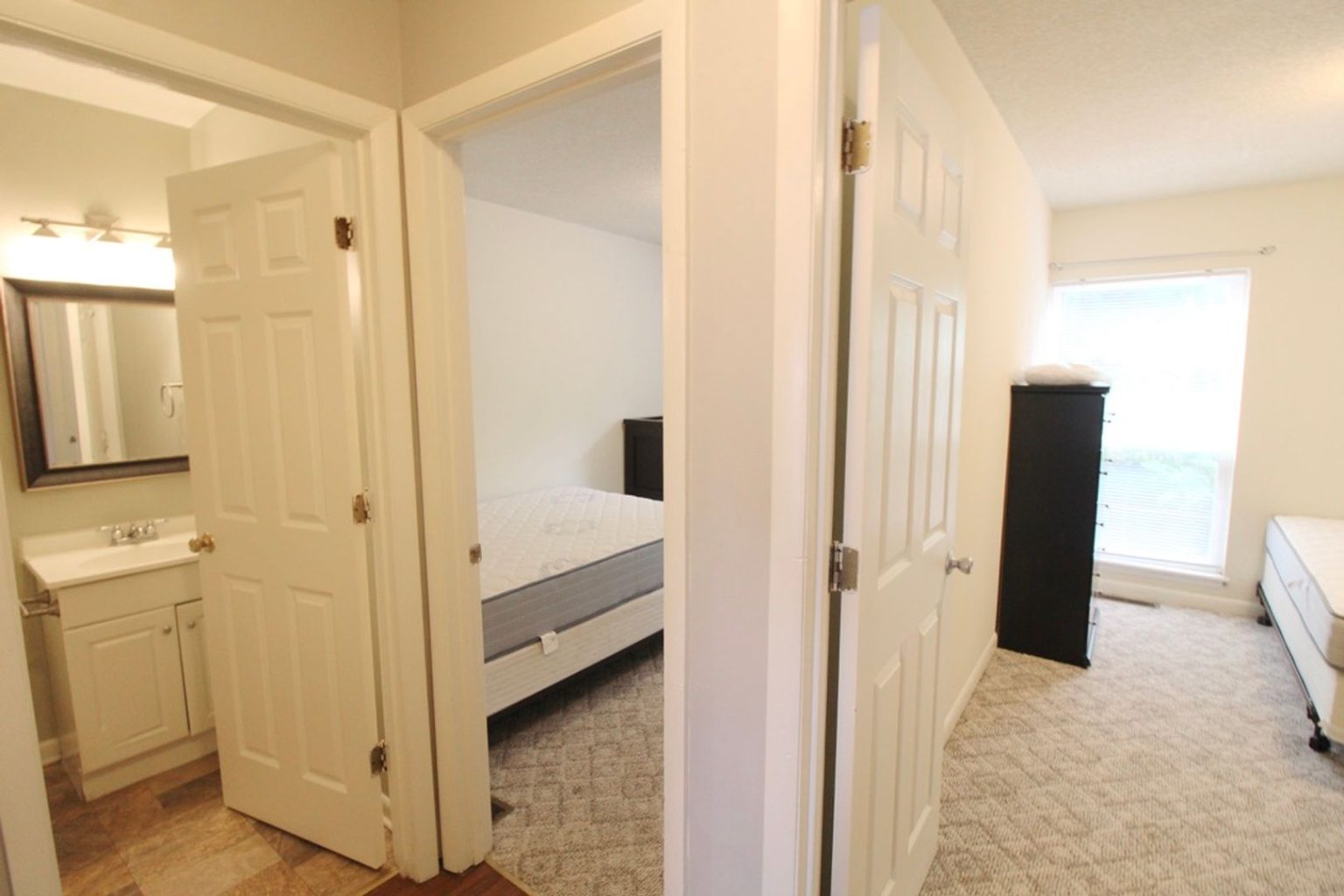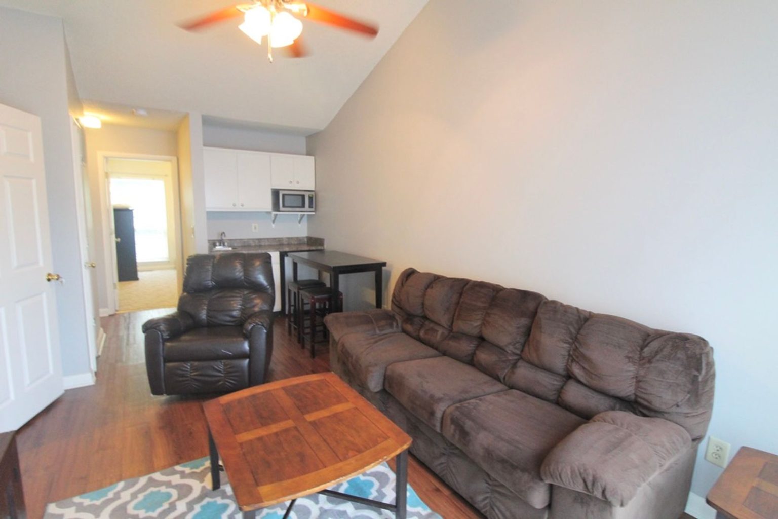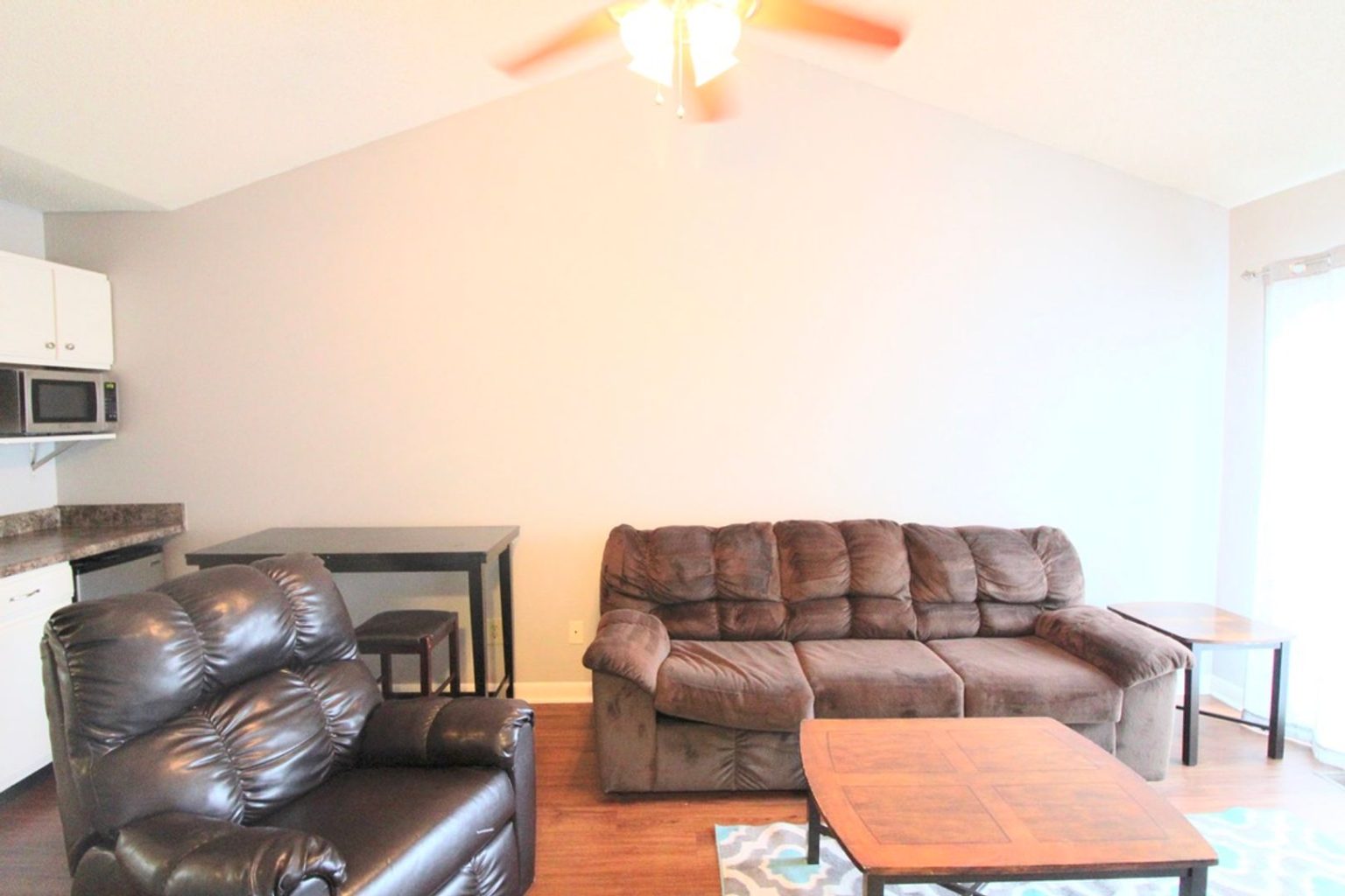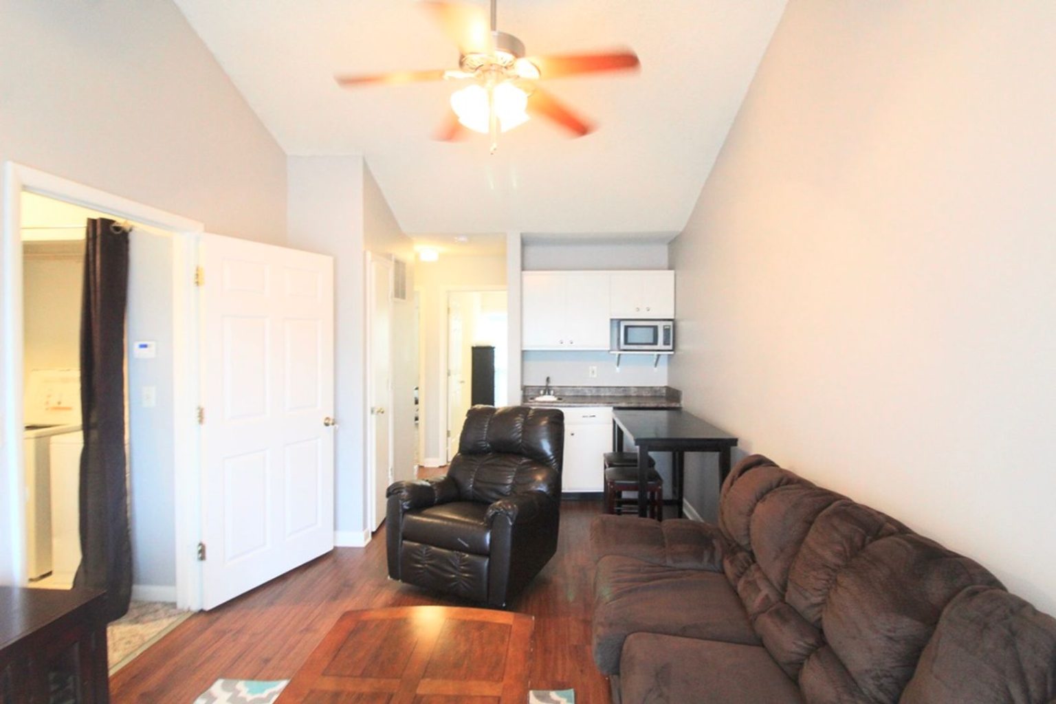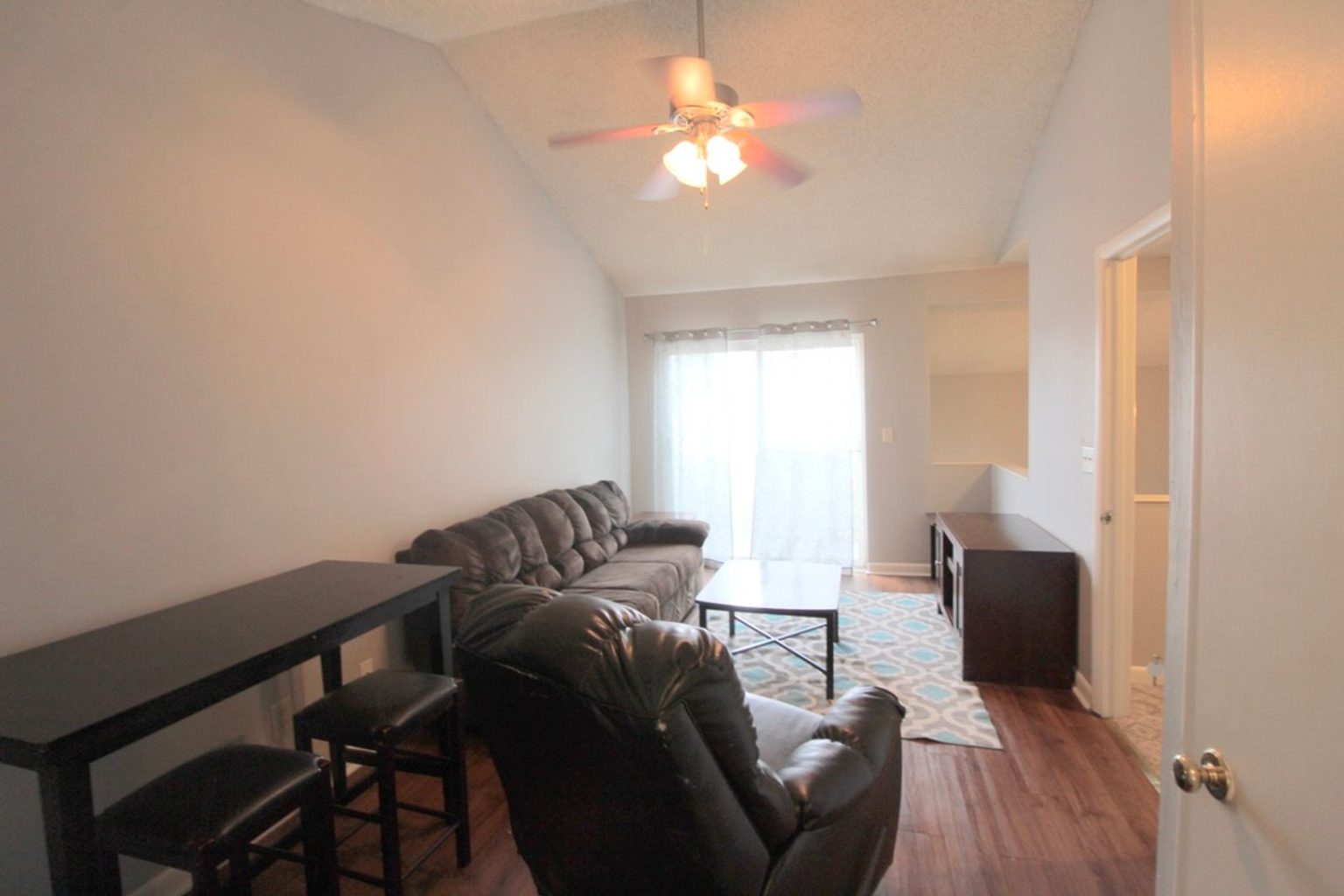 We have 2 bedrooms left in this 4 bedroom 2 bath townhome. This is a townhome set up as two different apartments separated by floor. Each floor has a balcony, living room, 2 beds, 1 bath, and a mini kitchen. The larger kitchen and laundry are shared between the two floors.