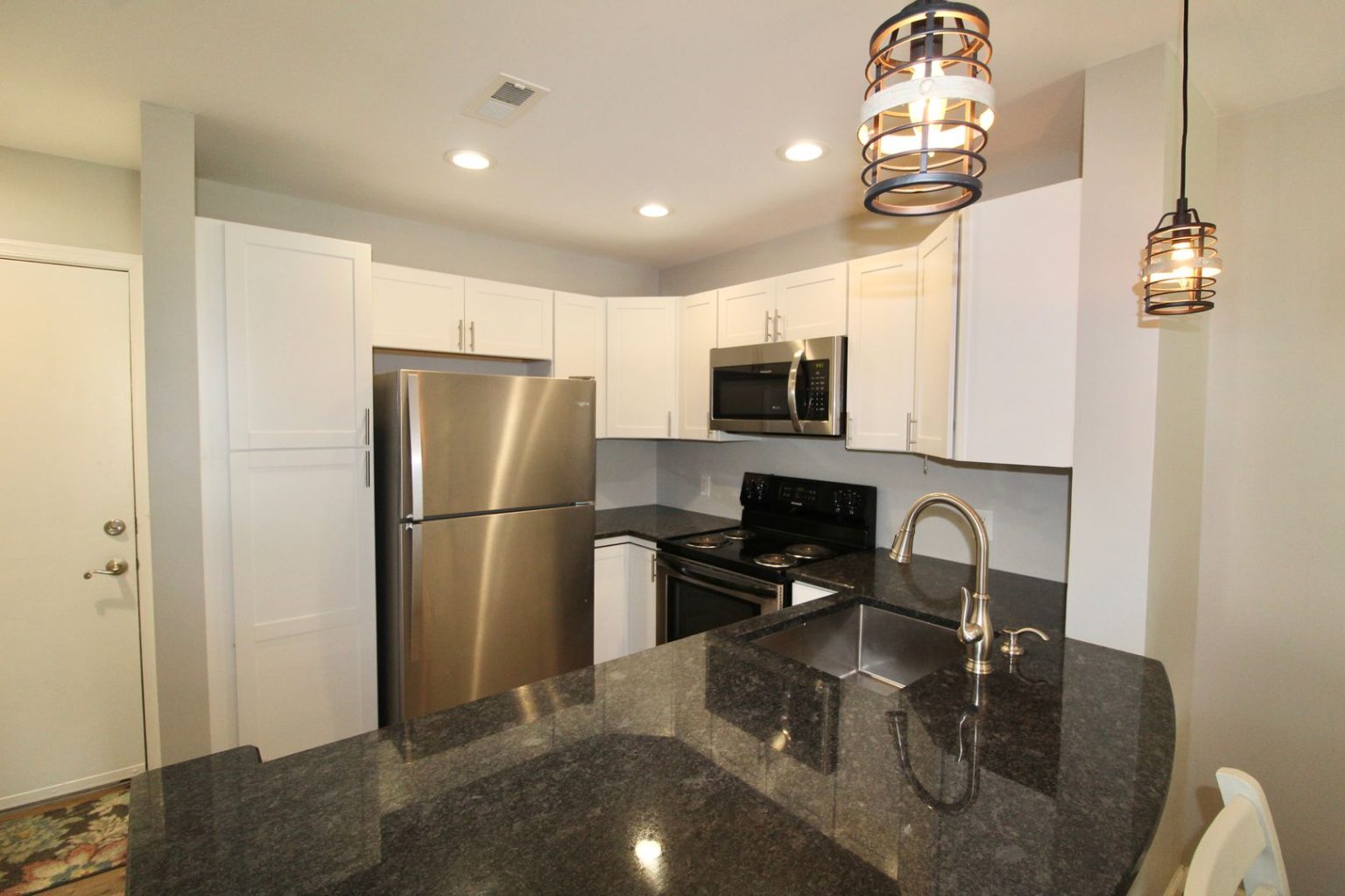 Furnished 3 bedroom with 3 full bathrooms located in Hunters Ridge on the first floor. Fully remodeled with wood style tile flooring, stainless appliances, granite counter tops, new bathrooms, kitchen and more.