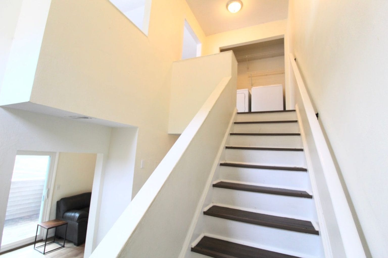 We have just the upstairs left to rent in this furnished townhome with electric and water included. Camden Townes is located right by JMU off Port Republic Road. Each level offers two bedrooms, one bathroom, a mini kitchen, a living room, and a patio/balcony. There is a larger shared main kitchen on the first level and a full-size washer and dryer on the second level.