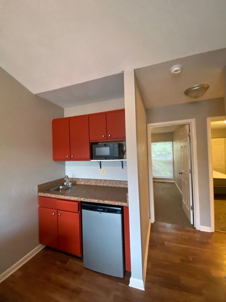 Available for the upcoming school year with separate leases. This townhome is separated by floor making it similar to having 2 apartments. Each floor has its own, living room, mini kitchenette, 2 bedrooms, a bathroom, and a balcony. The Large kitchen and laundry are shared between the two floors.